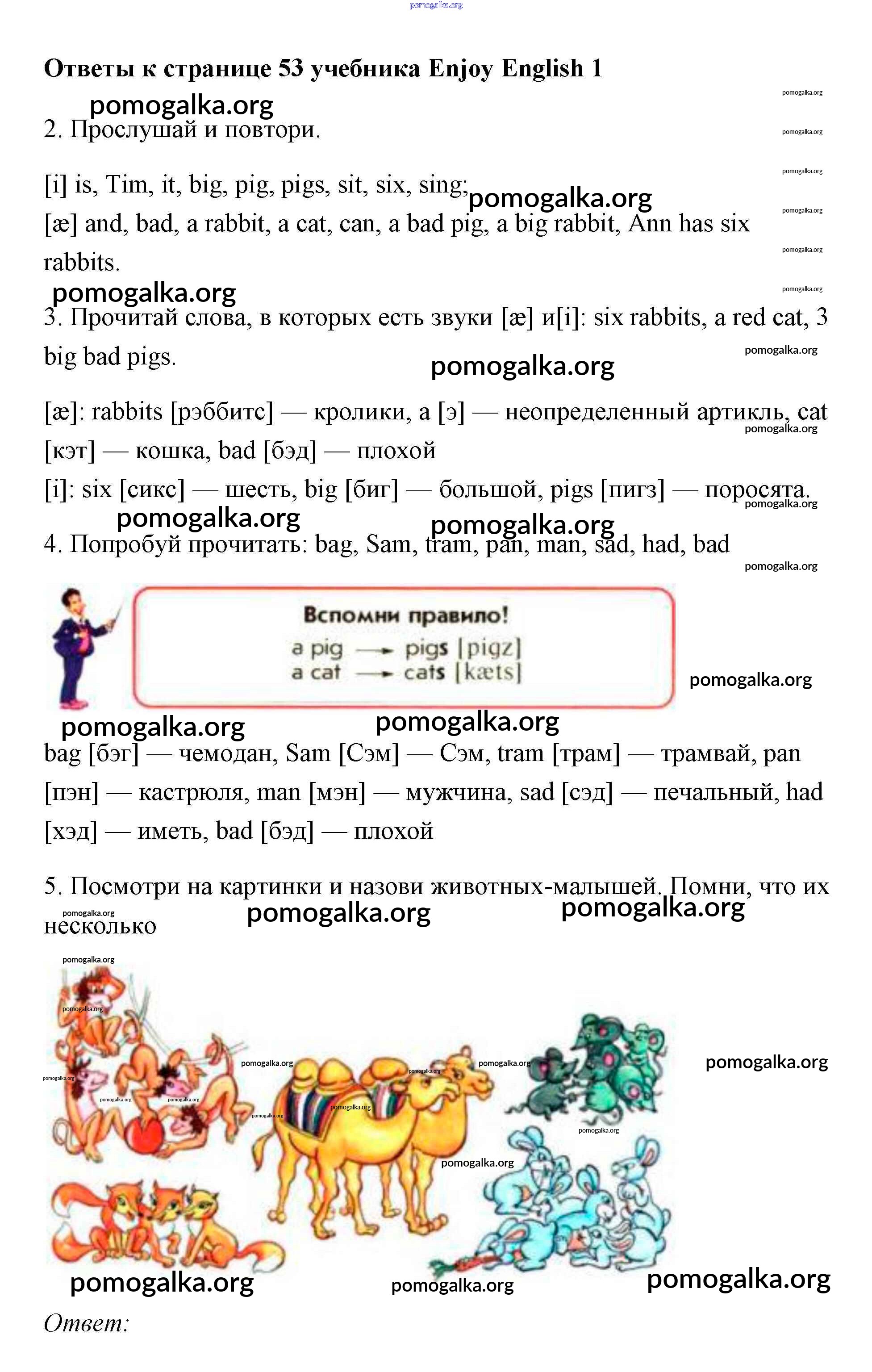 Готовые ответы - Английский язык 1 класс Биболетова - страница 53