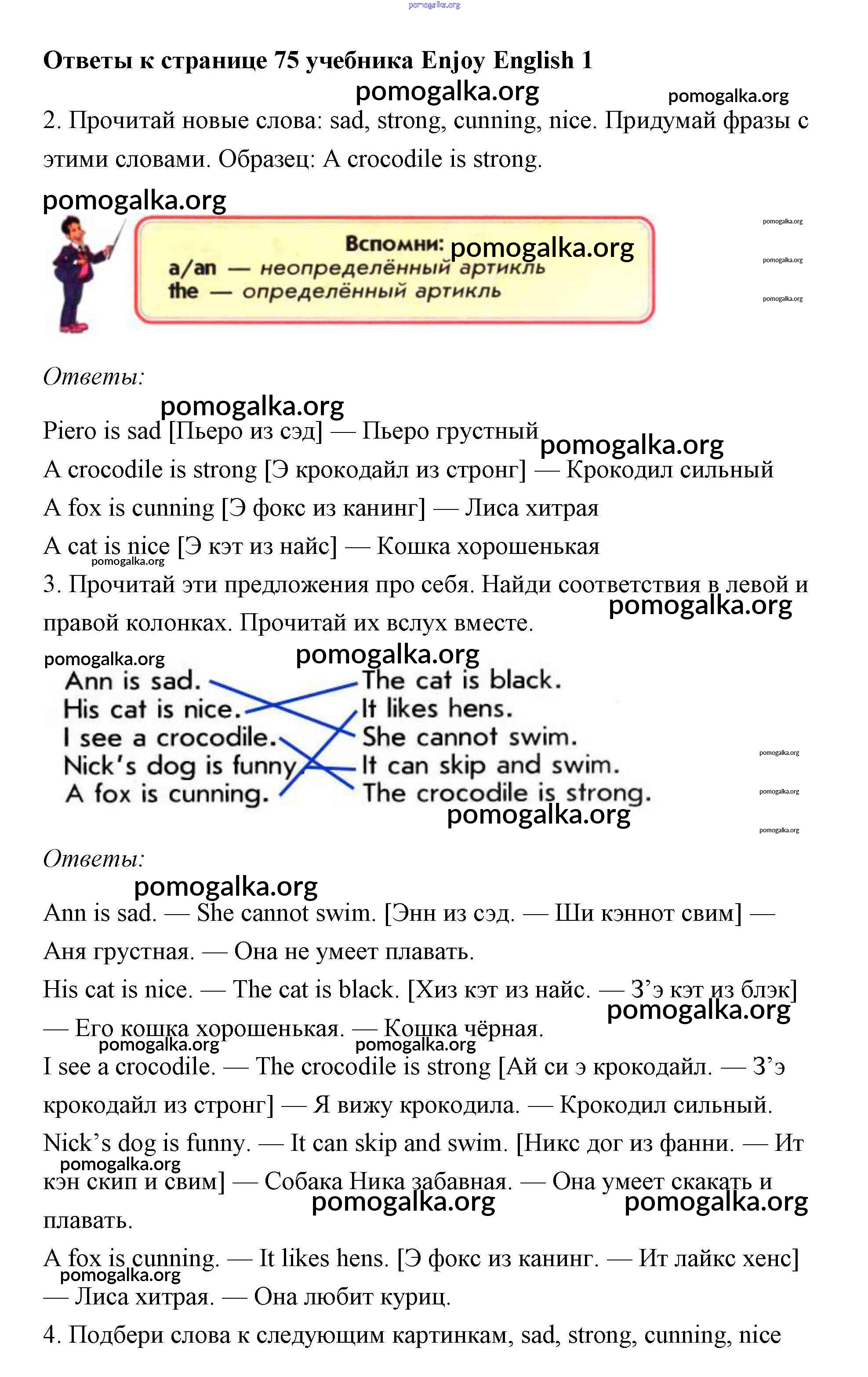 Готовые ответы - Английский язык 1 класс Биболетова - страница 75