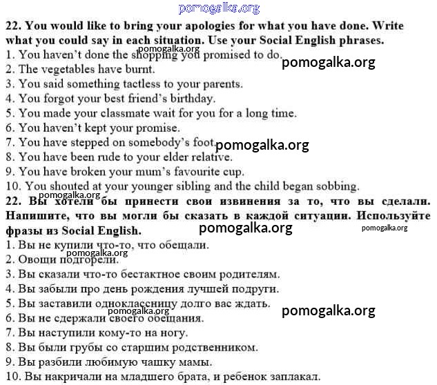 Готовые ответы - Английский язык 10 класс рабочая тетрадь Rainbow Афанасьева О.В. - unit 2 22