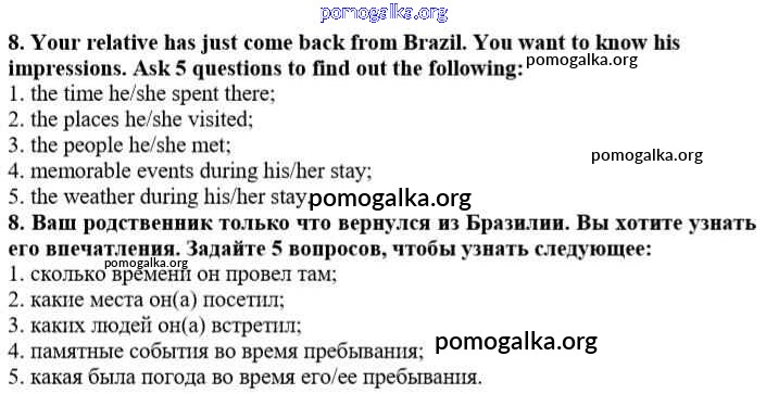Готовые ответы - Английский язык 10 класс рабочая тетрадь Rainbow Афанасьева О.В. - unit 4 8