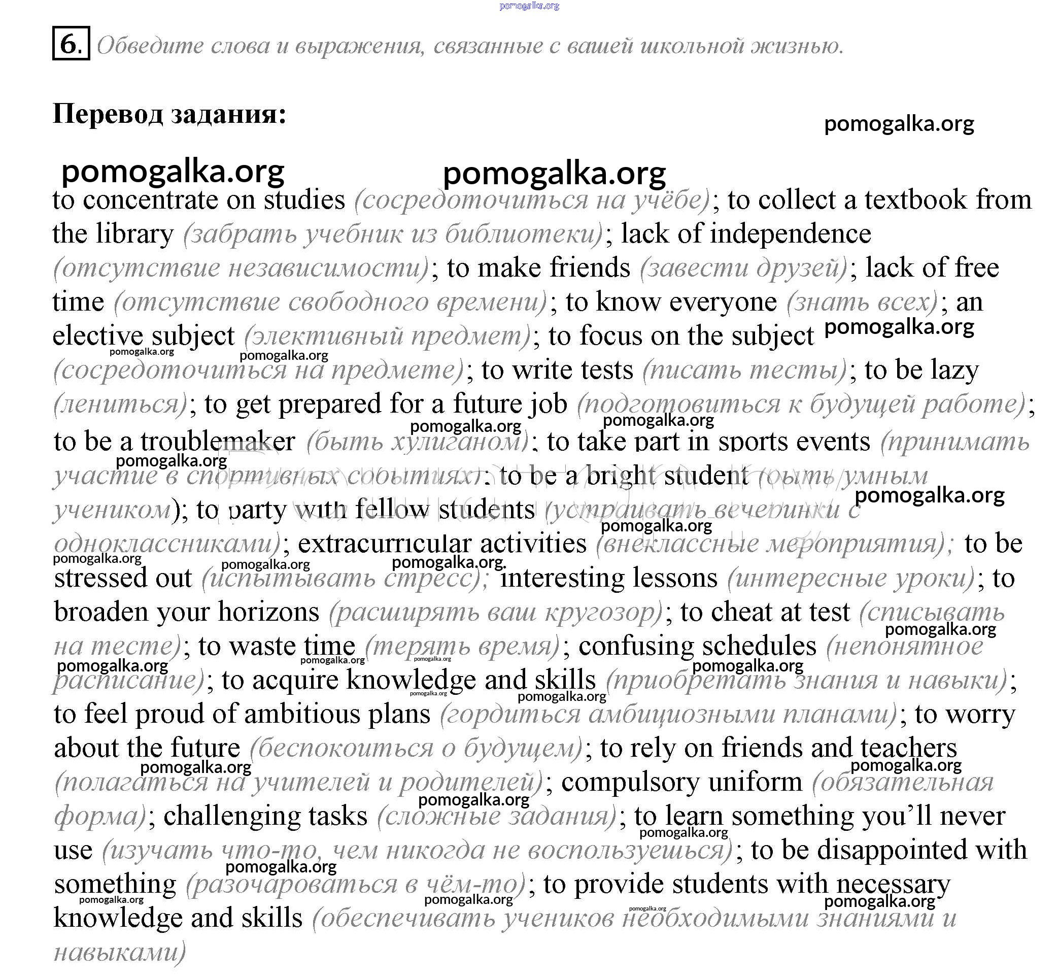 Готовые ответы - Английский язык 10 класс рабочая тетрадь Биболетова - section 1 unit 1 6