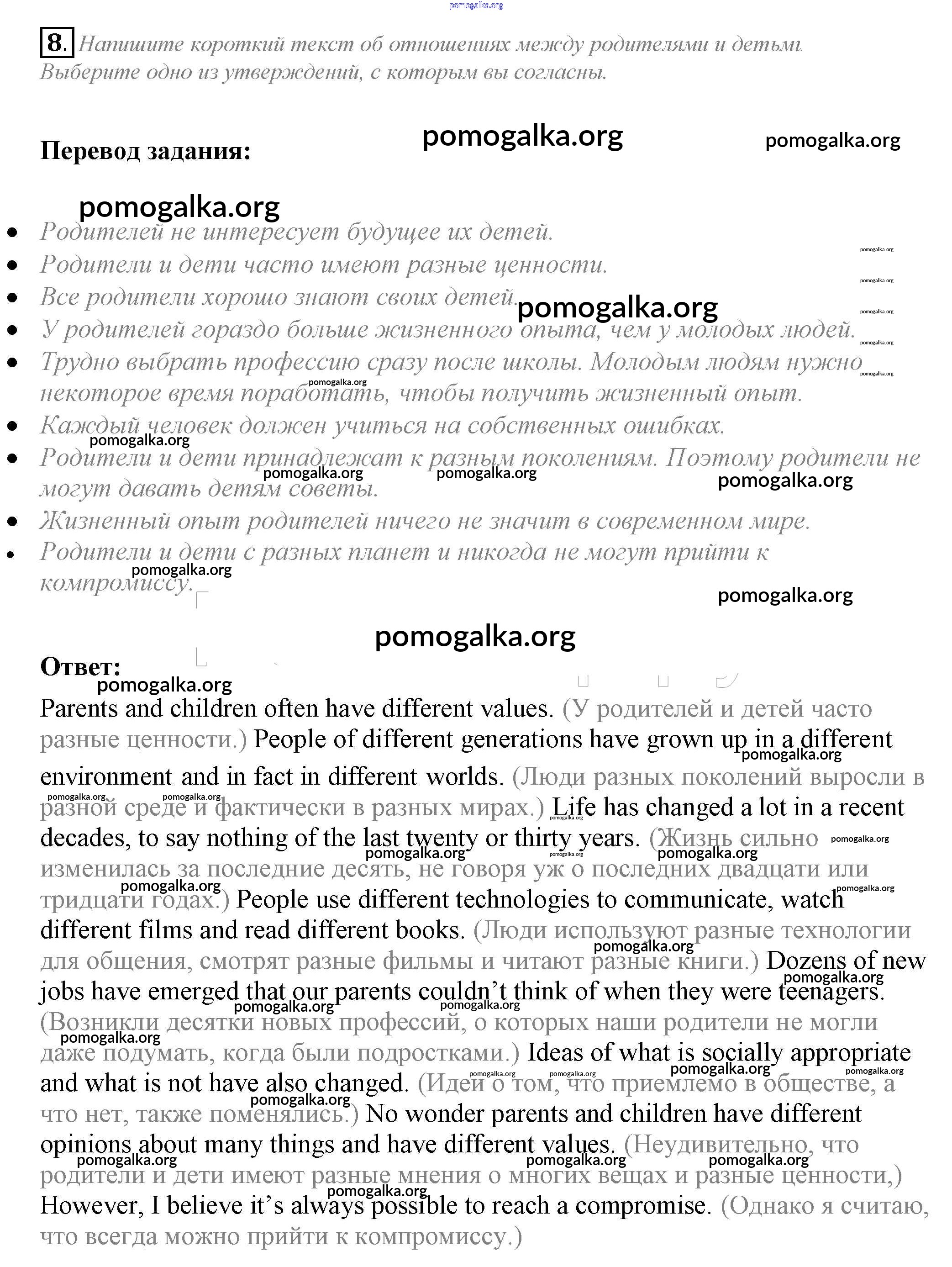 Готовые ответы - Английский язык 10 класс рабочая тетрадь Биболетова - section 4 unit 2 8