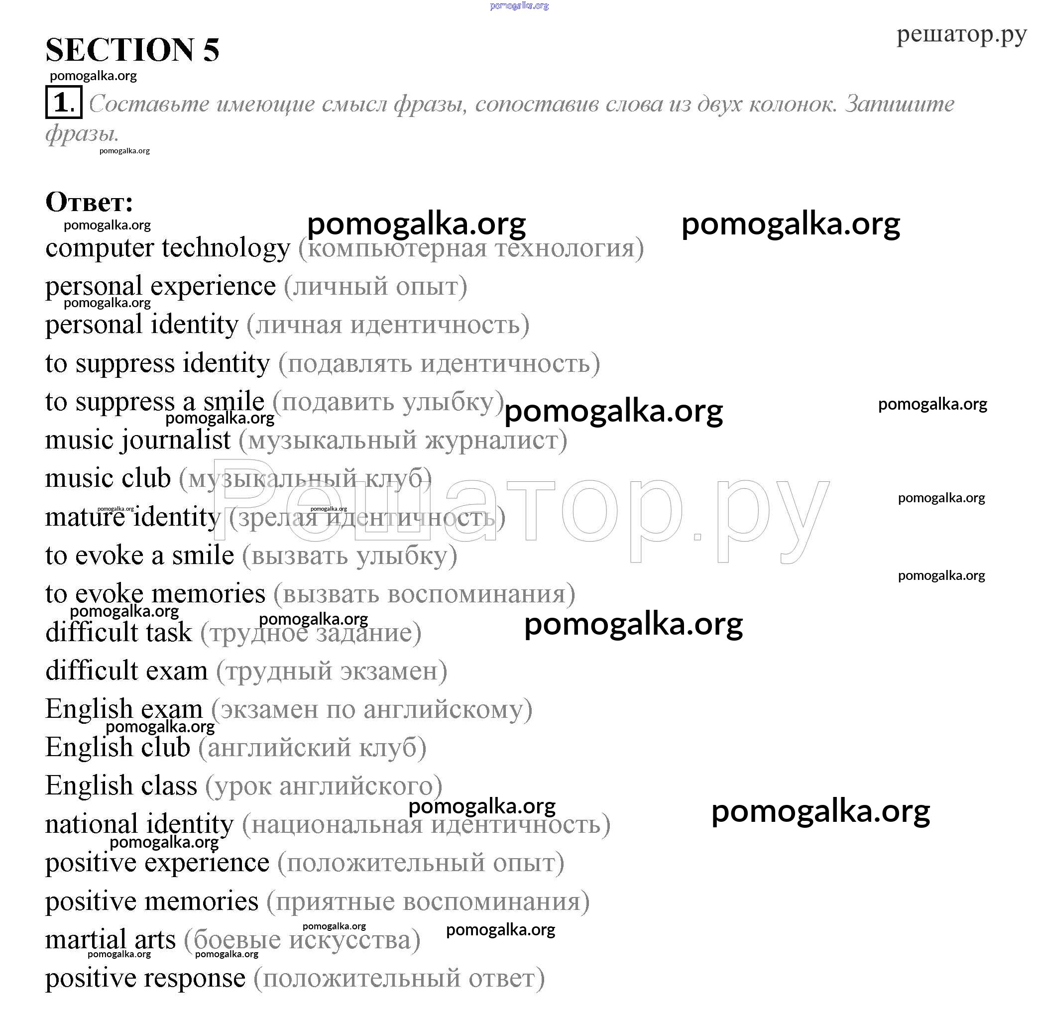 Готовые ответы - Английский язык 10 класс рабочая тетрадь Биболетова - section 5 unit 1 1