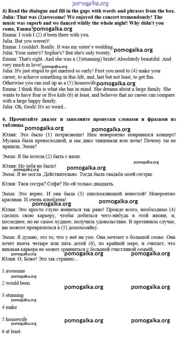 Готовые ответы - Английский язык 10 класс рабочая тетрадь №1 Enjoy English Биболетова М.З. - section 5 unit 2 6