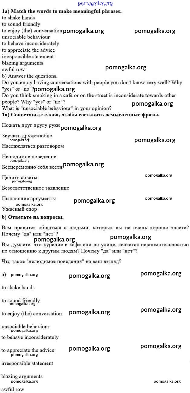 Готовые ответы - Английский язык 10 класс рабочая тетрадь №1 Enjoy English Биболетова М.З. - section 3 unit 4 1