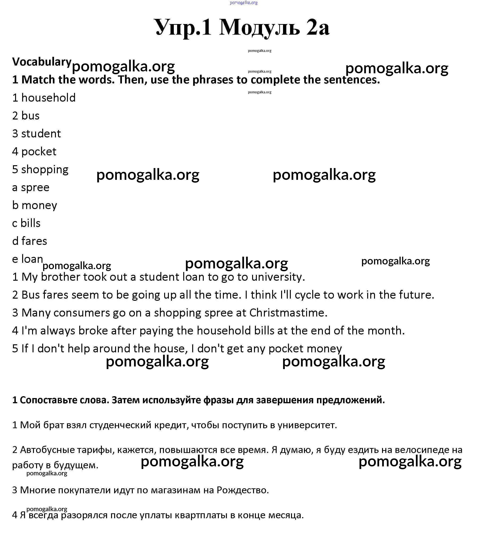 Готовые ответы - Английский язык 10 класс рабочая тетрадь Spotlight Афанасьева О.В. - часть 2a module 2 1