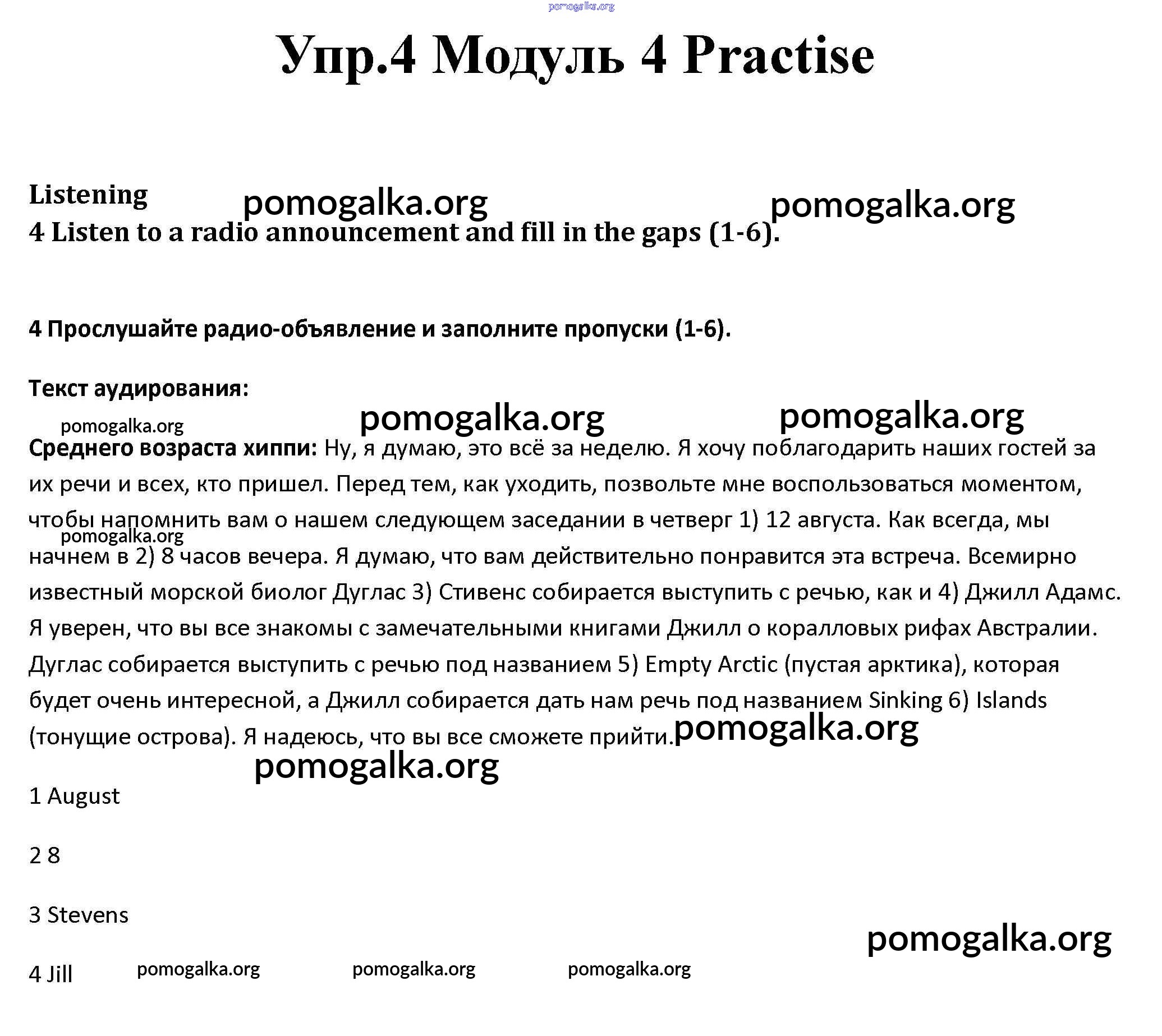 Готовые ответы - Английский язык 10 класс рабочая тетрадь Spotlight Афанасьева О.В. - Vocabulary Practice module 4 4