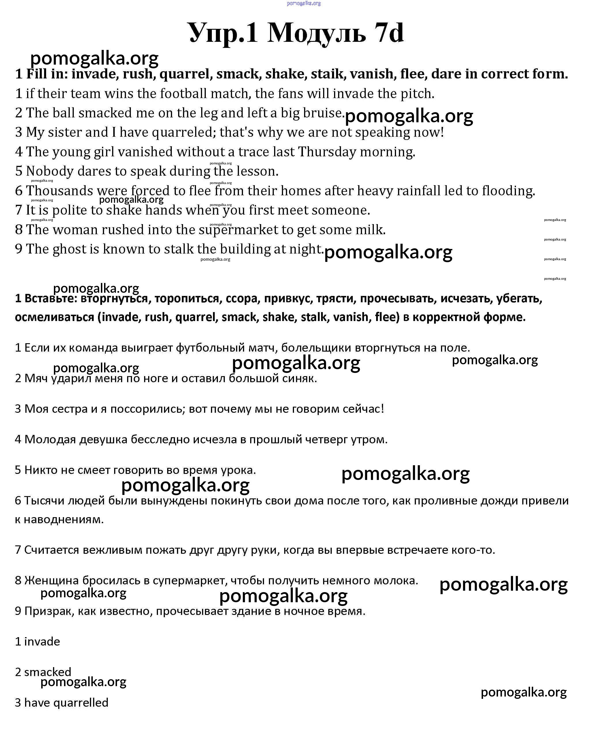 Готовые ответы - Английский язык 10 класс рабочая тетрадь Spotlight Афанасьева О.В. - часть 7d module 7 1
