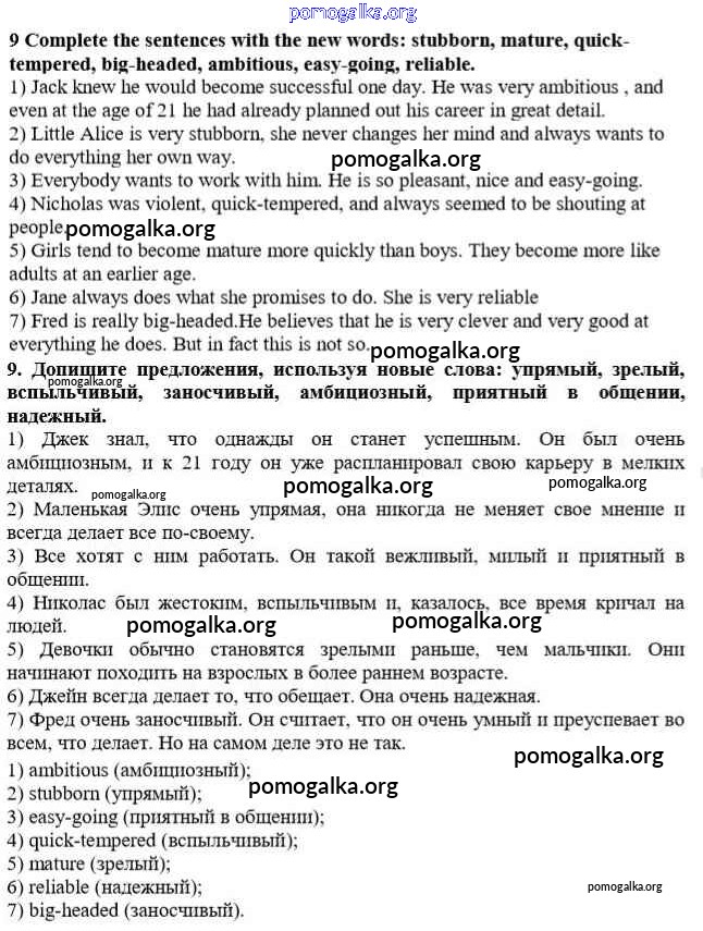 Готовые ответы - Английский язык 10 класс Rainbow Афанасьева О.В. - step 1 unit 1 9