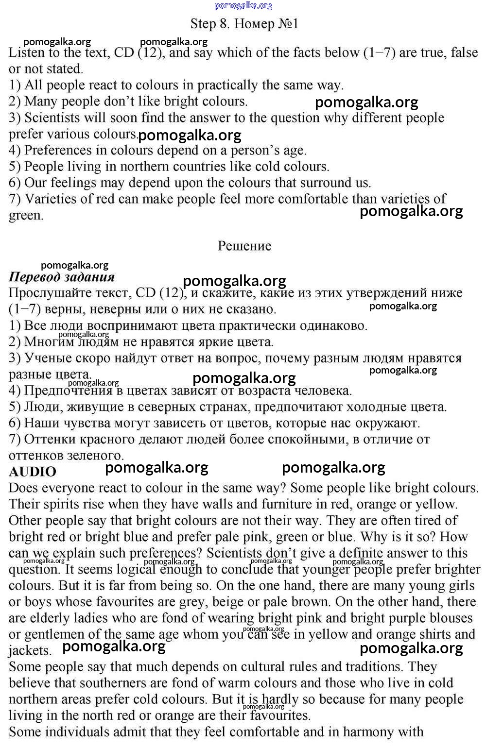 Готовые ответы - Английский язык 10 класс Rainbow Афанасьева О.В. - step 8 unit 1 1