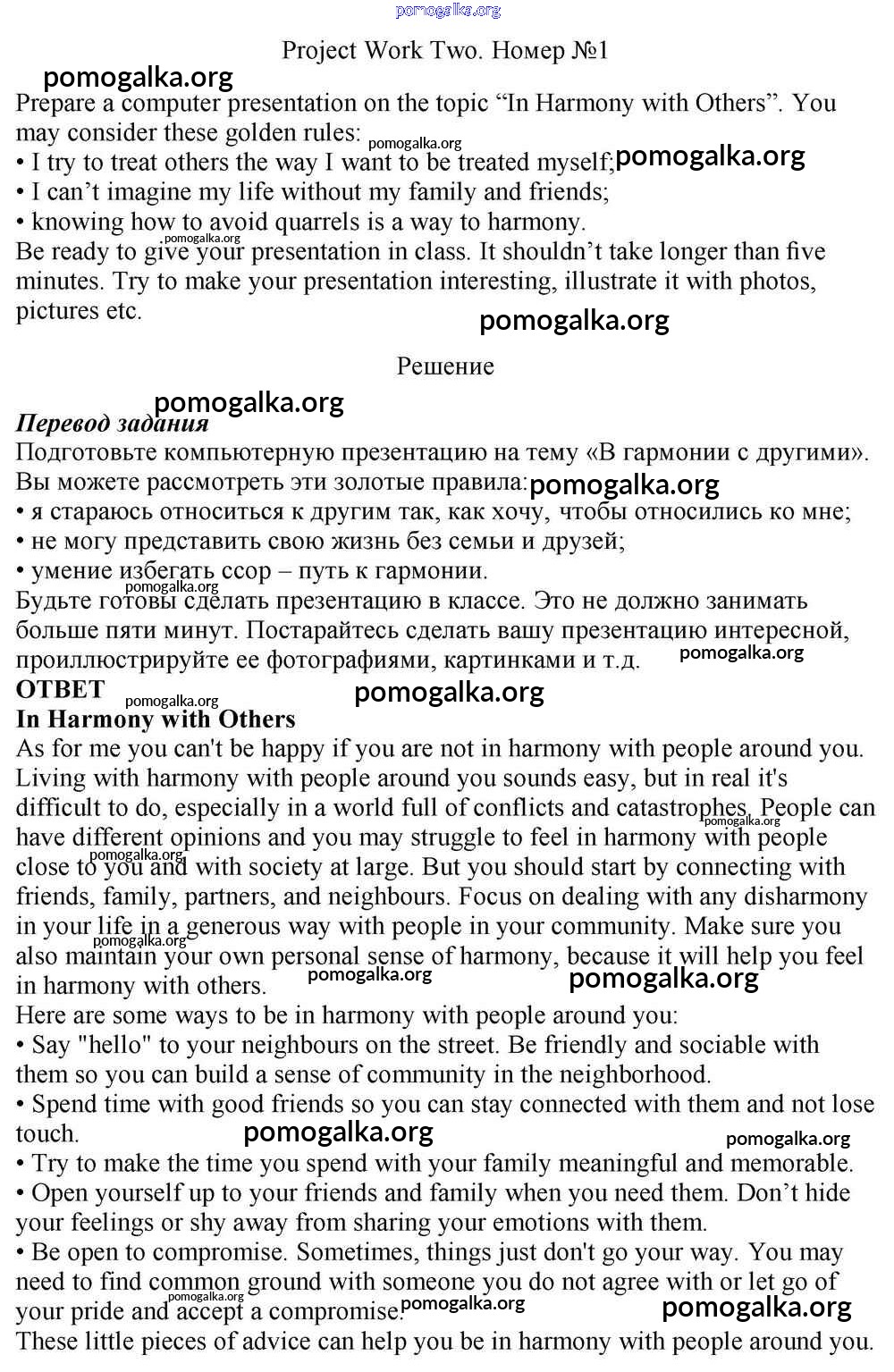 Готовые ответы - Английский язык 10 класс Rainbow Афанасьева О.В. - project work unit 2 1