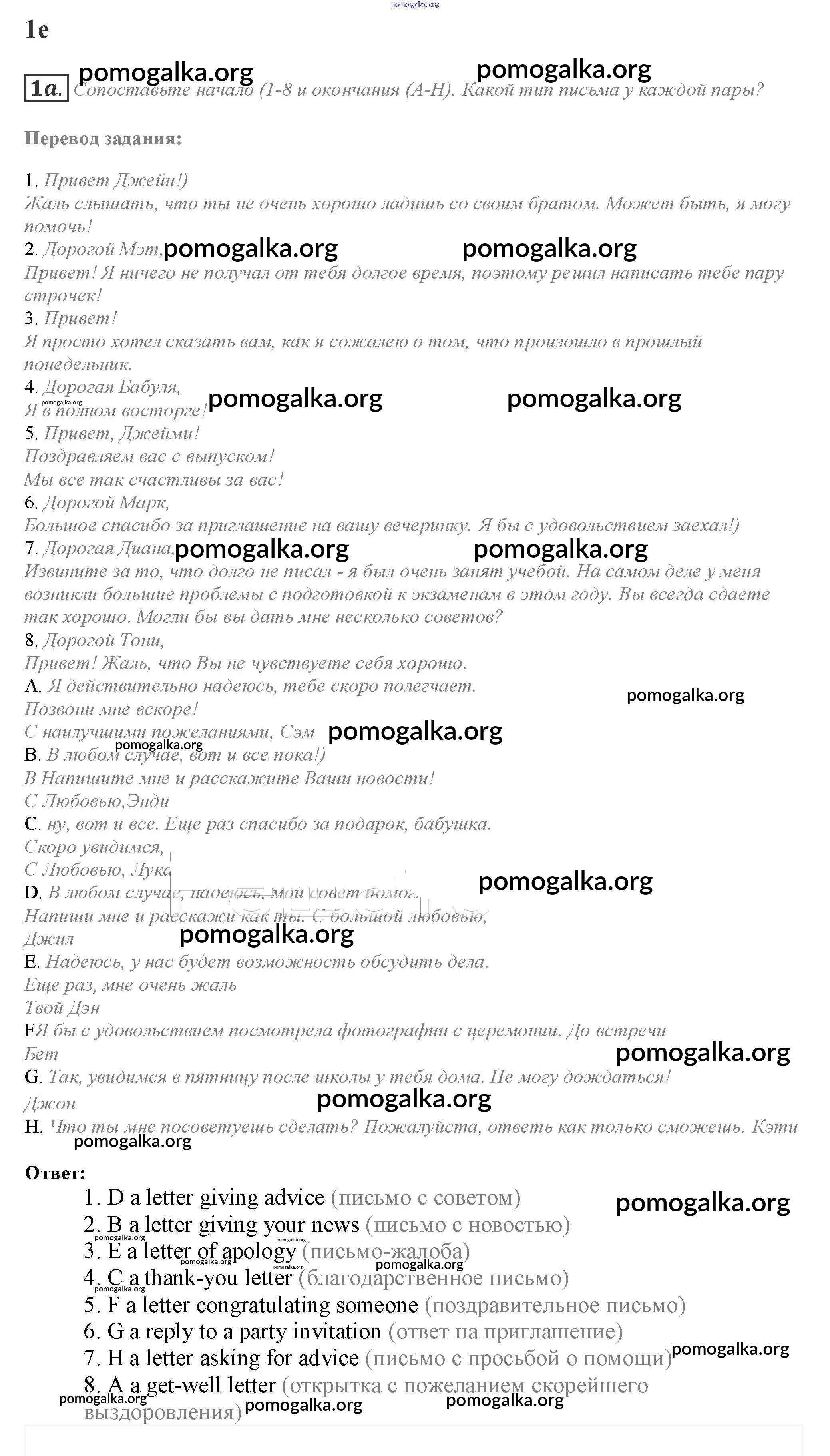 Готовые ответы - Английский язык 10 класс Spotlight Афанасьева О.В. - часть 1e module 1 1a