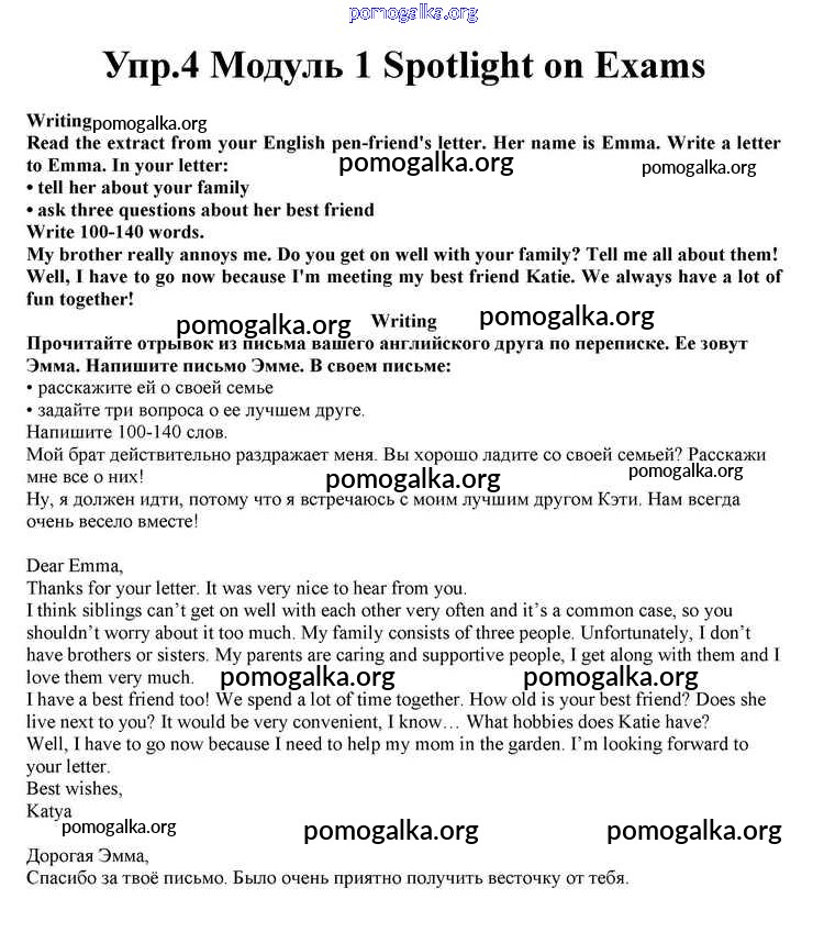 Готовые ответы - Английский язык 10 класс Spotlight Афанасьева О.В. - spotlight on exams module 1 4