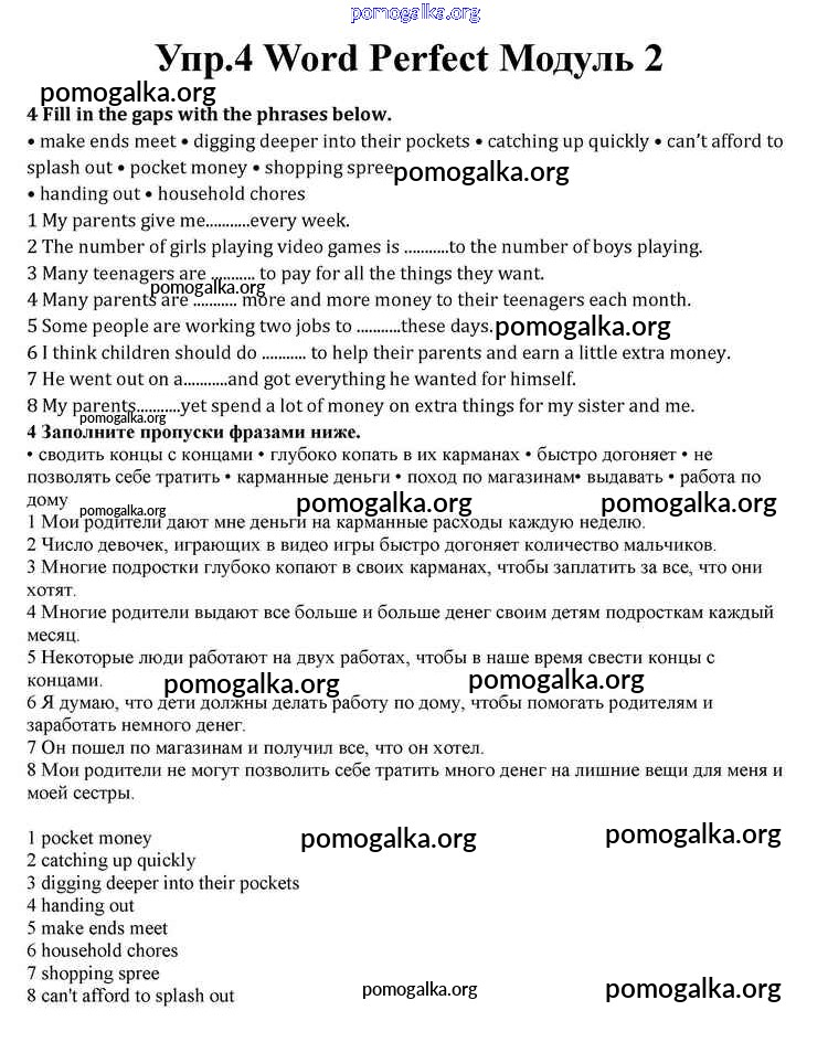Готовые ответы - Английский язык 10 класс Spotlight Афанасьева О.В. - module 2 word perfect 4