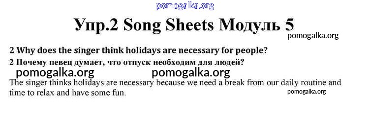 Готовые ответы - Английский язык 10 класс Spotlight Афанасьева О.В. - module 5 song sheets 2