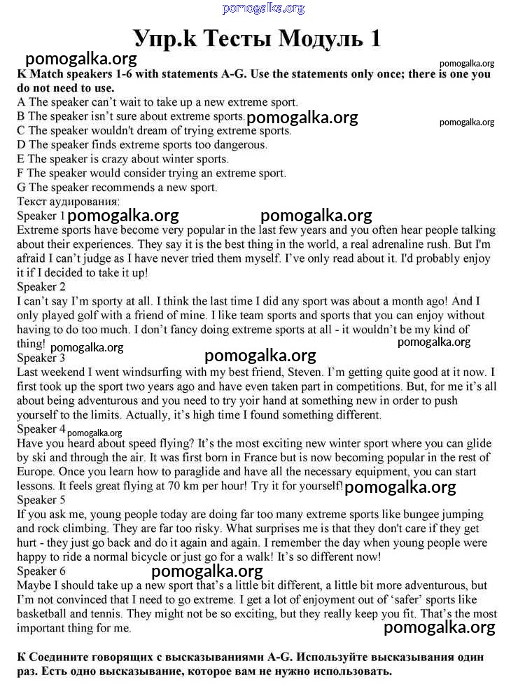 Готовые ответы - Английский язык 10 класс Spotlight Афанасьева О.В. - modul 1 книга с тестами k