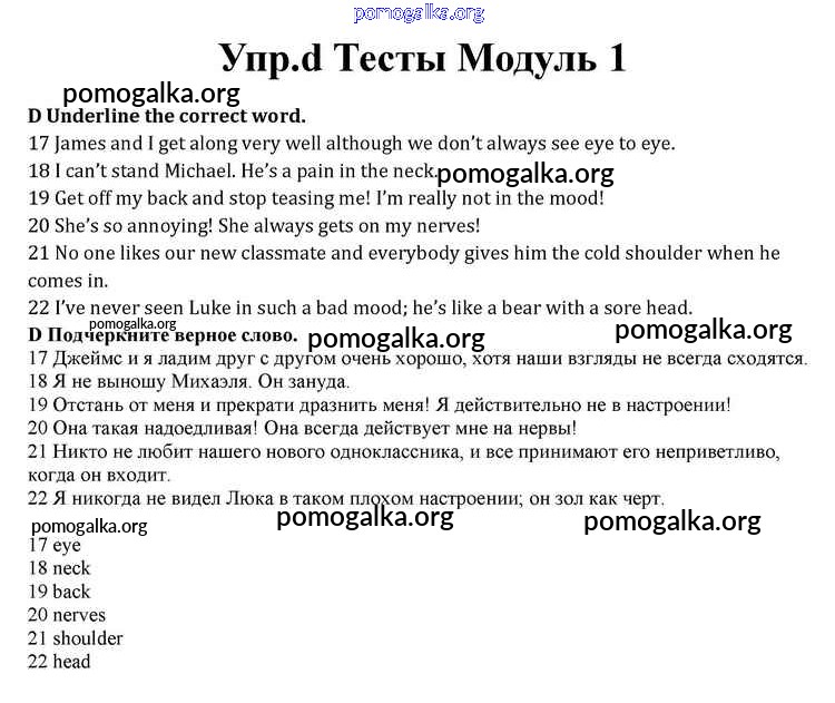 Готовые ответы - Английский язык 10 класс Spotlight Афанасьева О.В. - modul 1 книга с тестами d