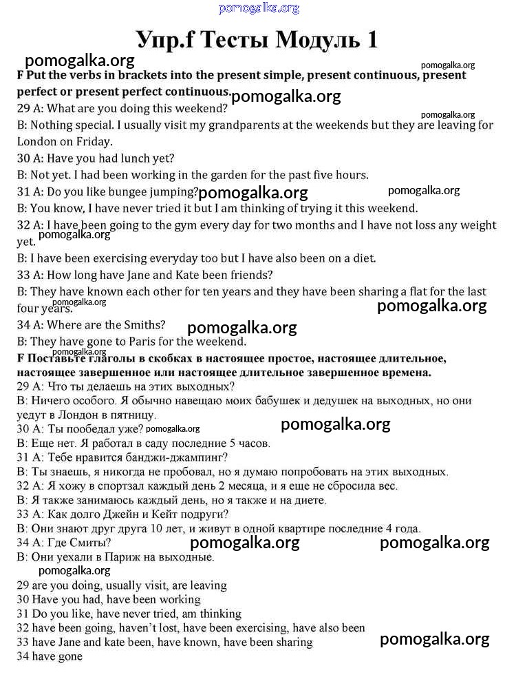 Готовые ответы - Английский язык 10 класс Spotlight Афанасьева О.В. - modul 1 книга с тестами f