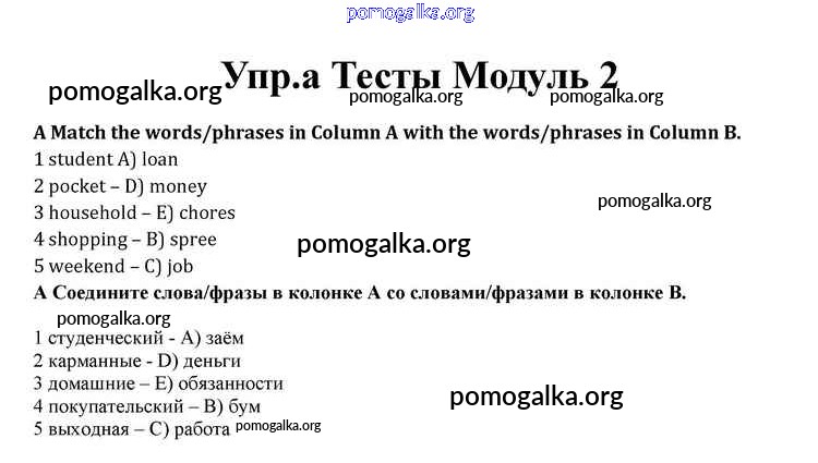 Готовые ответы - Английский язык 10 класс Spotlight Афанасьева О.В. - modul 2 книга с тестами a