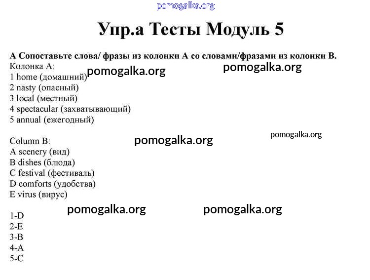 Готовые ответы - Английский язык 10 класс Spotlight Афанасьева О.В. - modul 5 книга с тестами a