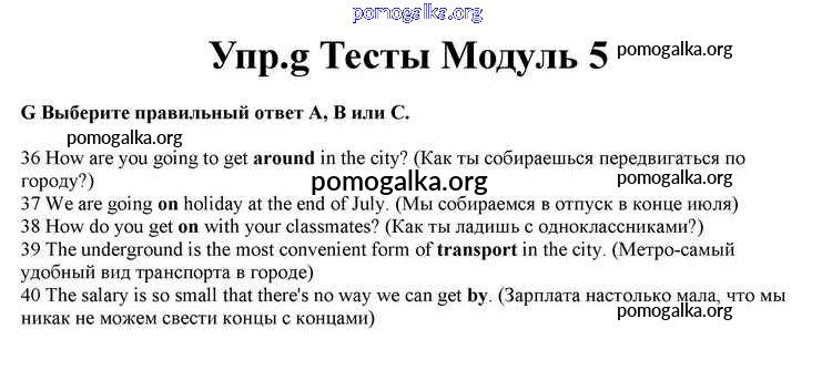 Готовые ответы - Английский язык 10 класс Spotlight Афанасьева О.В. - modul 5 книга с тестами g