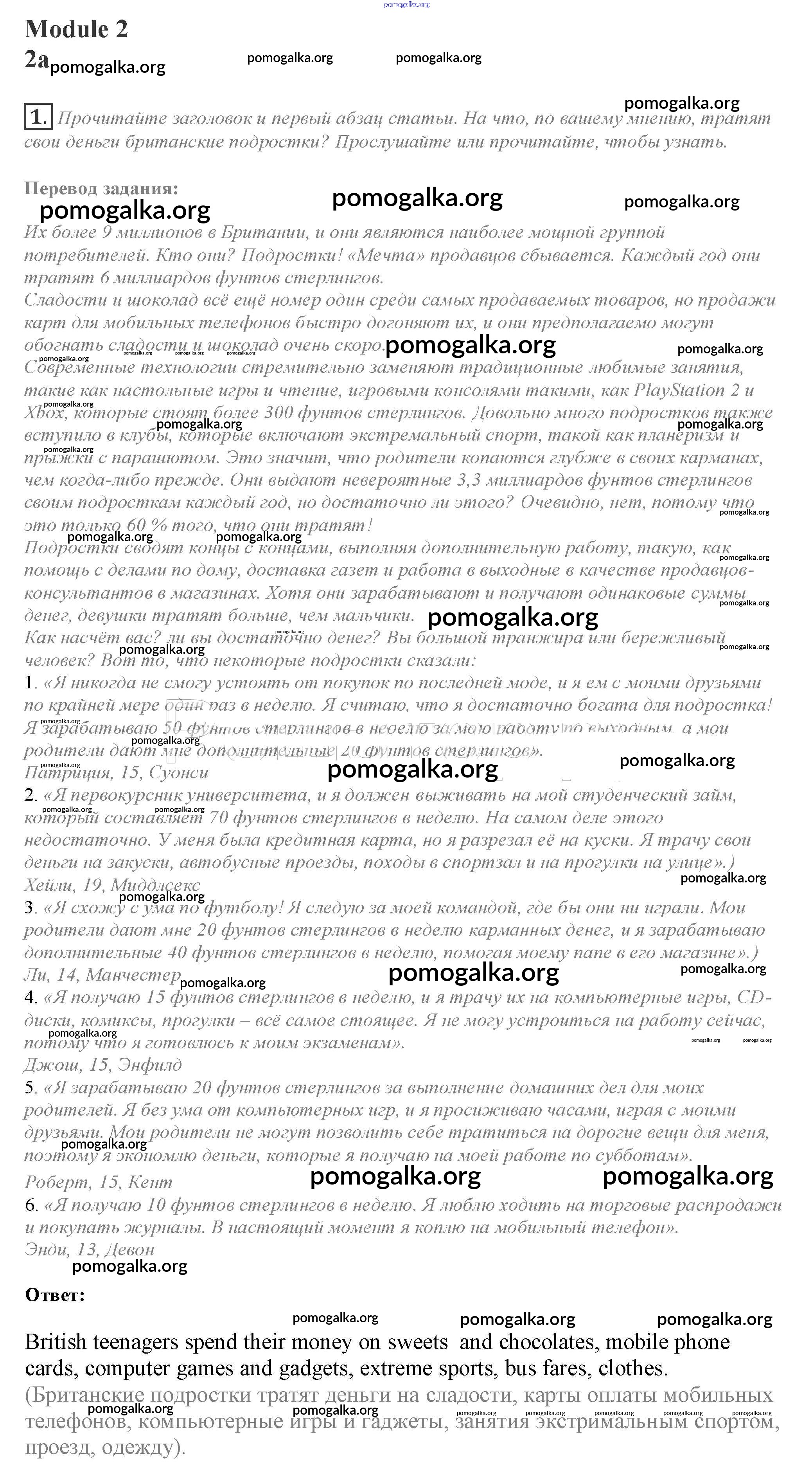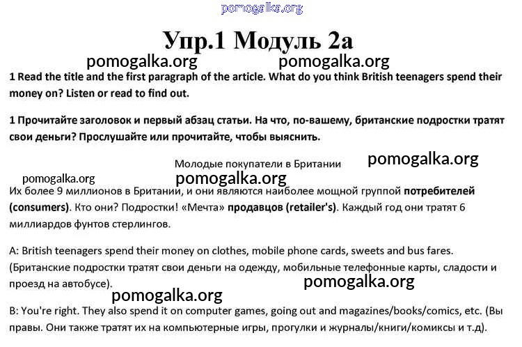 Готовые ответы - Английский язык 10 класс Spotlight Афанасьева О.В. - часть 2a module 2 1