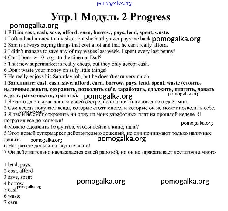Готовые ответы - Английский язык 10 класс Spotlight Афанасьева О.В. - progress check module 2 1
