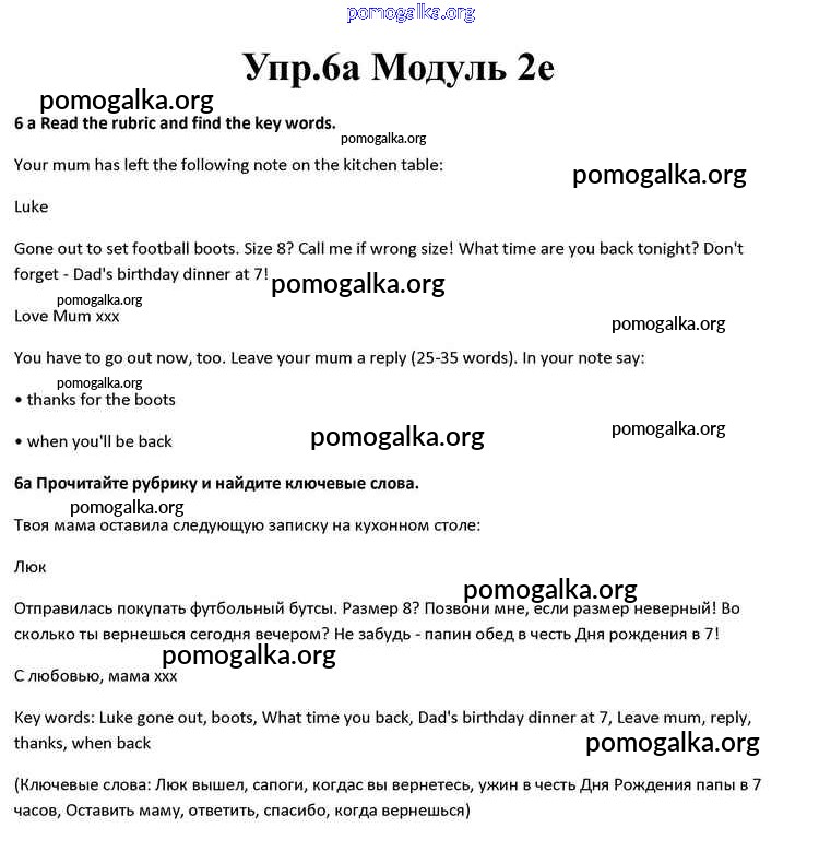 Готовые ответы - Английский язык 10 класс Spotlight Афанасьева О.В. - часть 2e module 2 6a