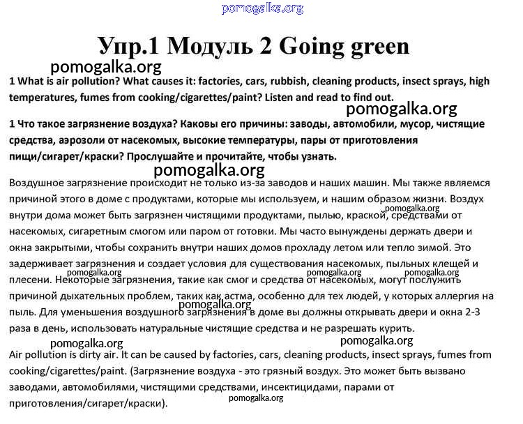 Готовые ответы - Английский язык 10 класс Spotlight Афанасьева О.В. - going green module 2 1