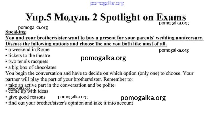 Готовые ответы - Английский язык 10 класс Spotlight Афанасьева О.В. - spotlight on exams module 2 5