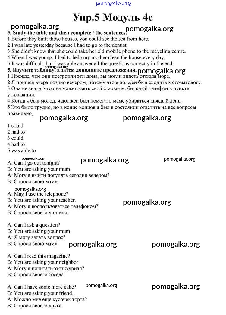 Готовые ответы - Английский язык 10 класс Spotlight Афанасьева О.В. - часть 4c module 4 5