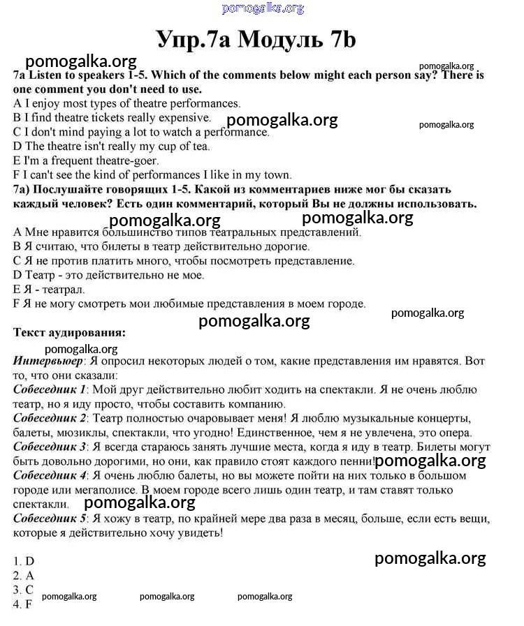 Готовые ответы - Английский язык 10 класс Spotlight Афанасьева О.В. - часть 7b module 7 7a