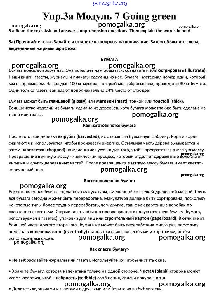 Готовые ответы - Английский язык 10 класс Spotlight Афанасьева О.В. - Going green module 7 3a