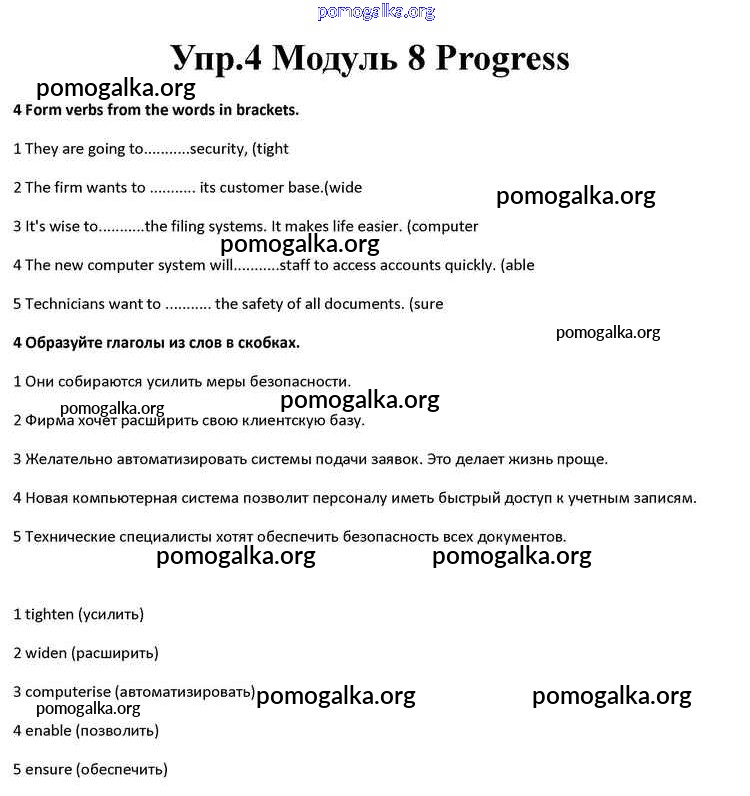 Готовые ответы - Английский язык 10 класс Spotlight Афанасьева О.В. - progress check module 8 4