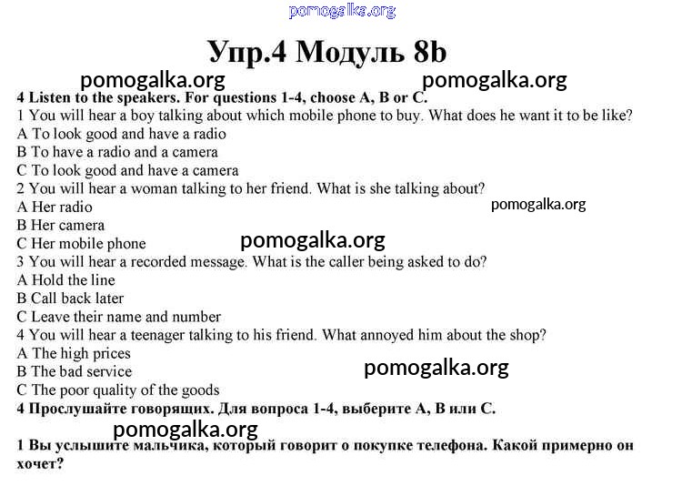 Готовые ответы - Английский язык 10 класс Spotlight Афанасьева О.В. - часть 8b module 8 4