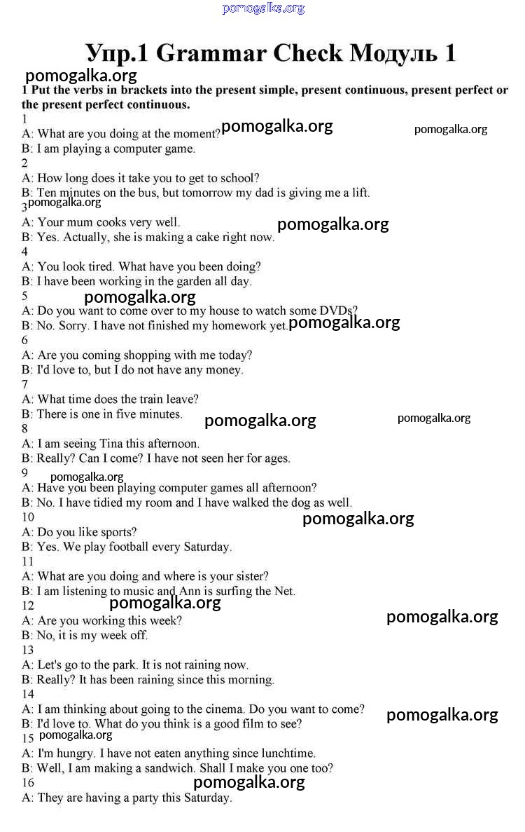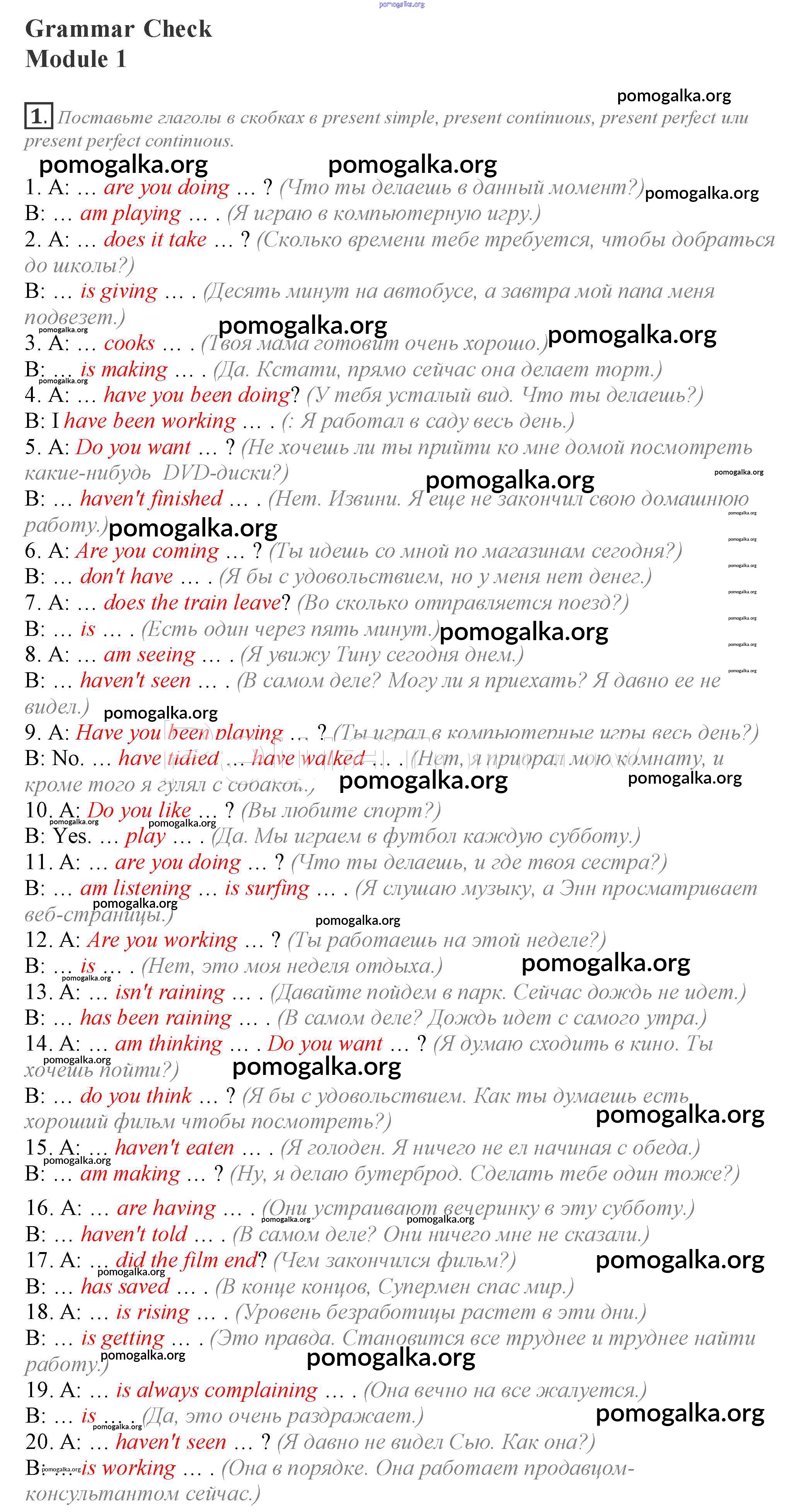 Готовые ответы - Английский язык 10 класс Spotlight Афанасьева О.В. - module 1 grammar check 1