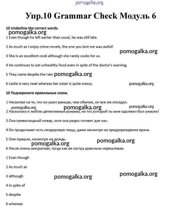 Готовые ответы - Английский язык 10 класс Spotlight Афанасьева О.В. - module 6 grammar check 10