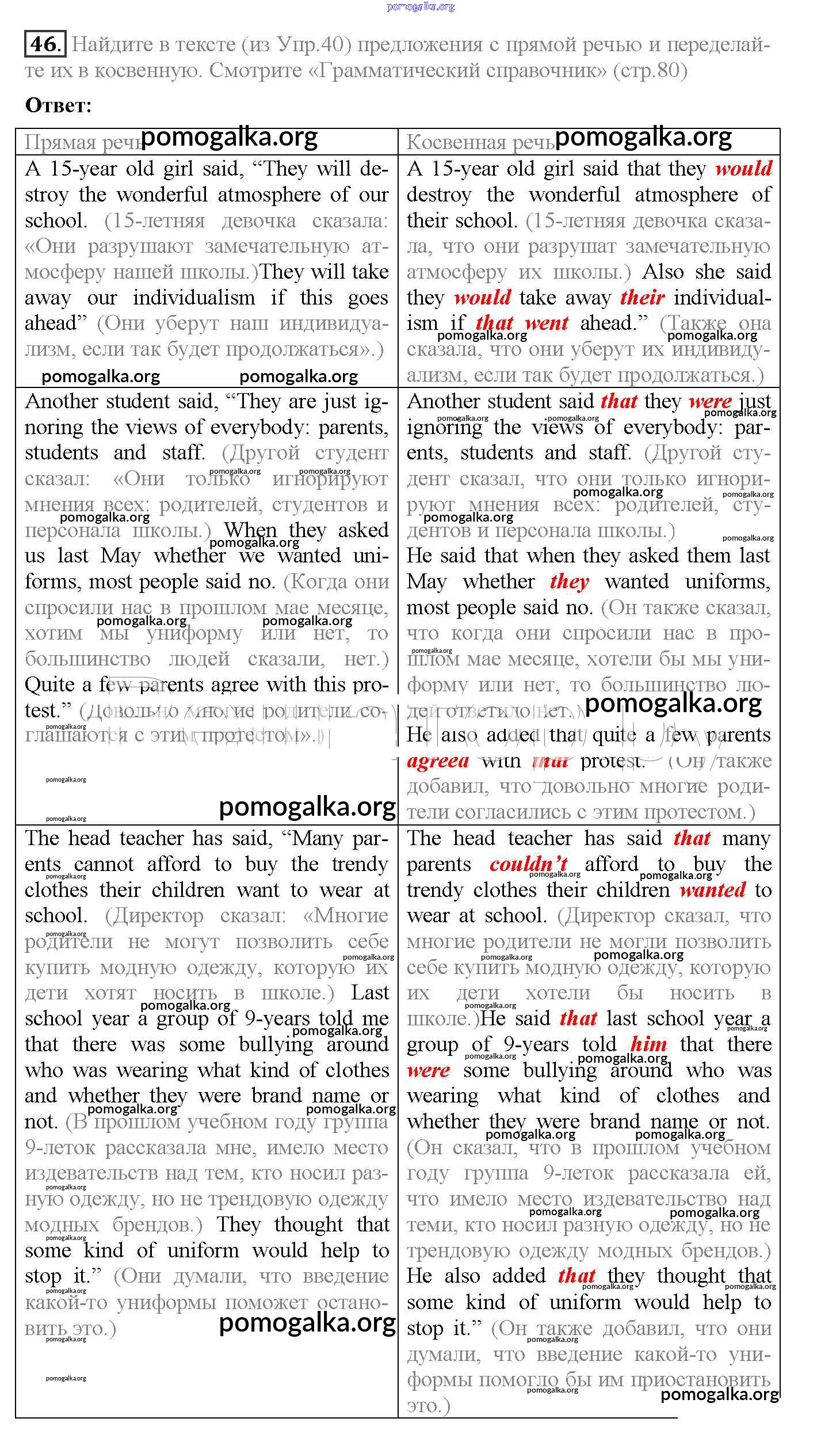 Готовые ответы - Английский язык 10 класс Enjoy English Биболетова М.З. - unit 1 46