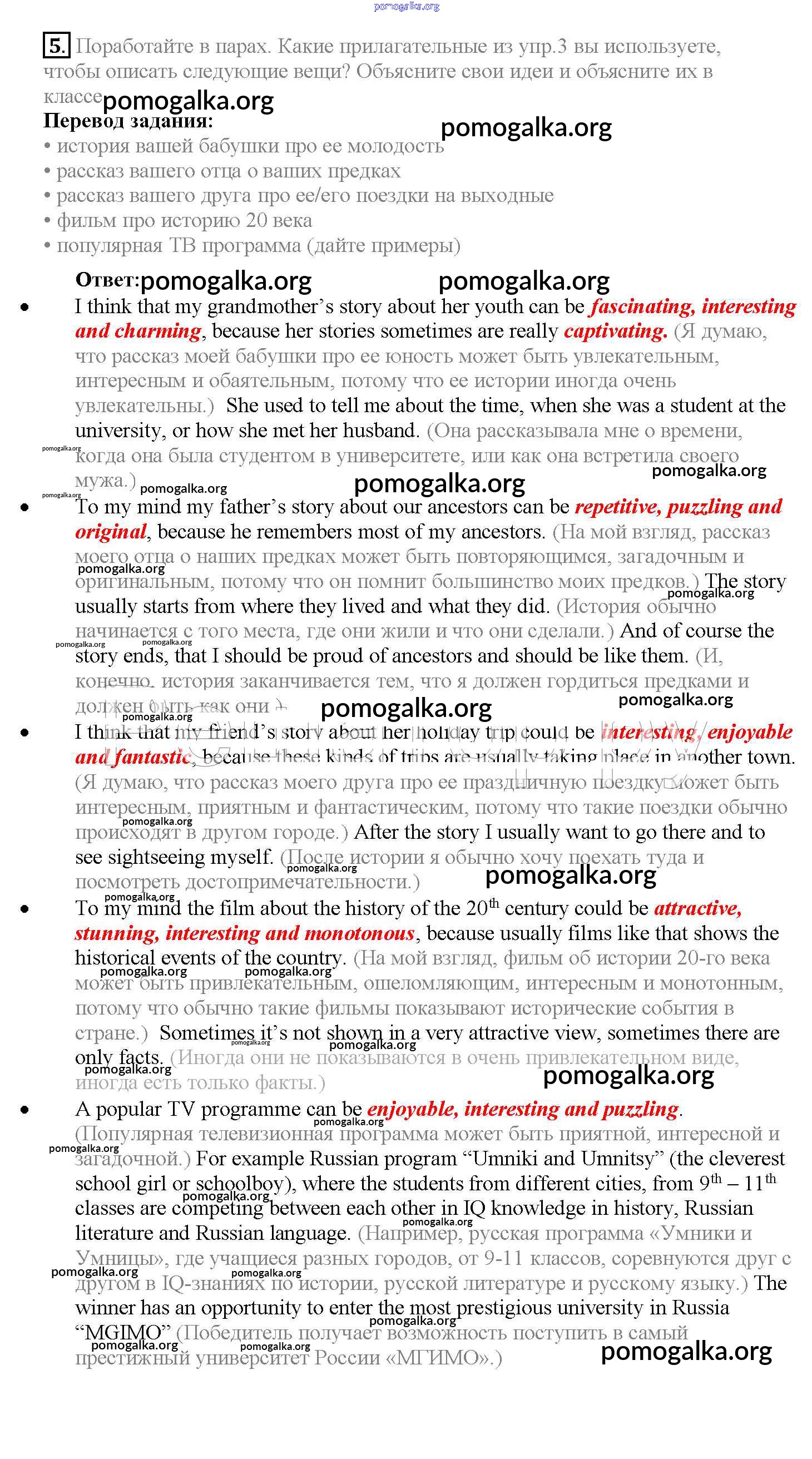 Готовые ответы - Английский язык 10 класс Enjoy English Биболетова М.З. - unit 2 5