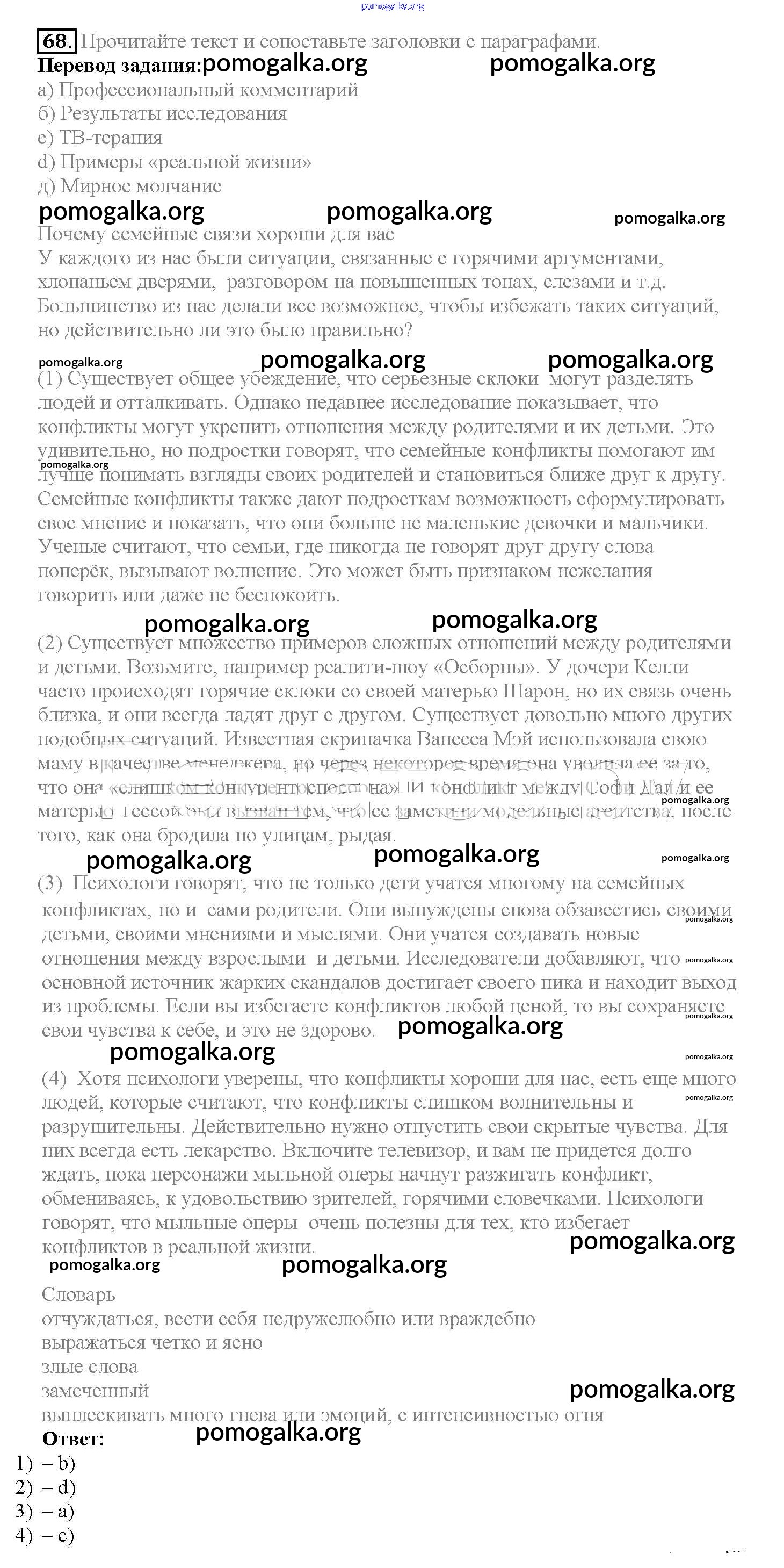 Готовые ответы - Английский язык 10 класс Enjoy English Биболетова М.З. - unit 2 68