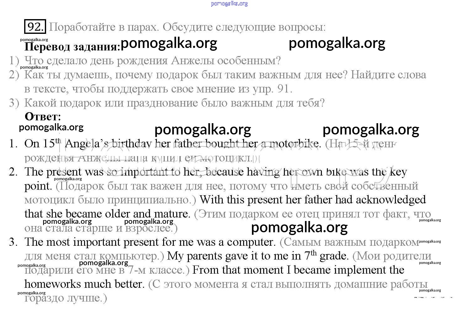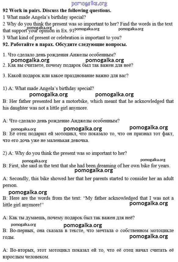 Готовые ответы - Английский язык 10 класс Enjoy English Биболетова М.З. - unit 2 92
