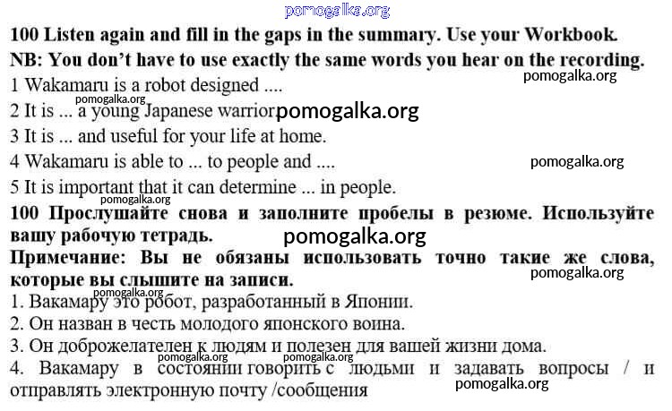 Готовые ответы - Английский язык 10 класс Enjoy English Биболетова М.З. - unit 3 100