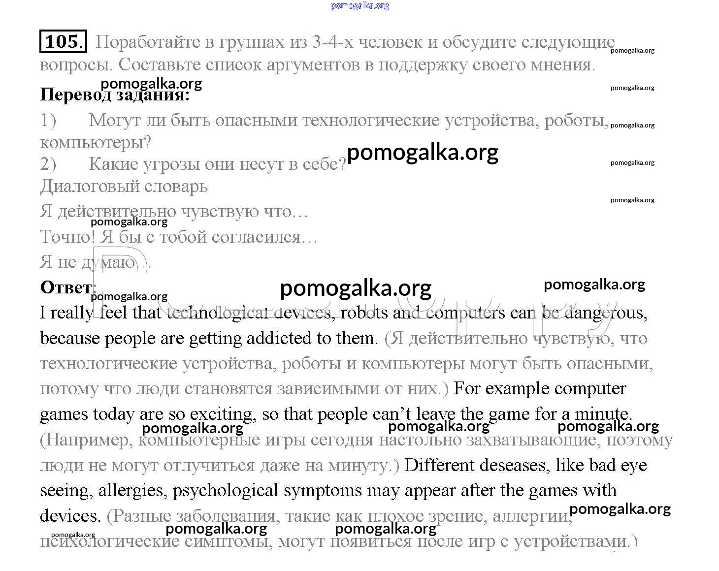 Готовые ответы - Английский язык 10 класс Enjoy English Биболетова М.З. - unit 3 105