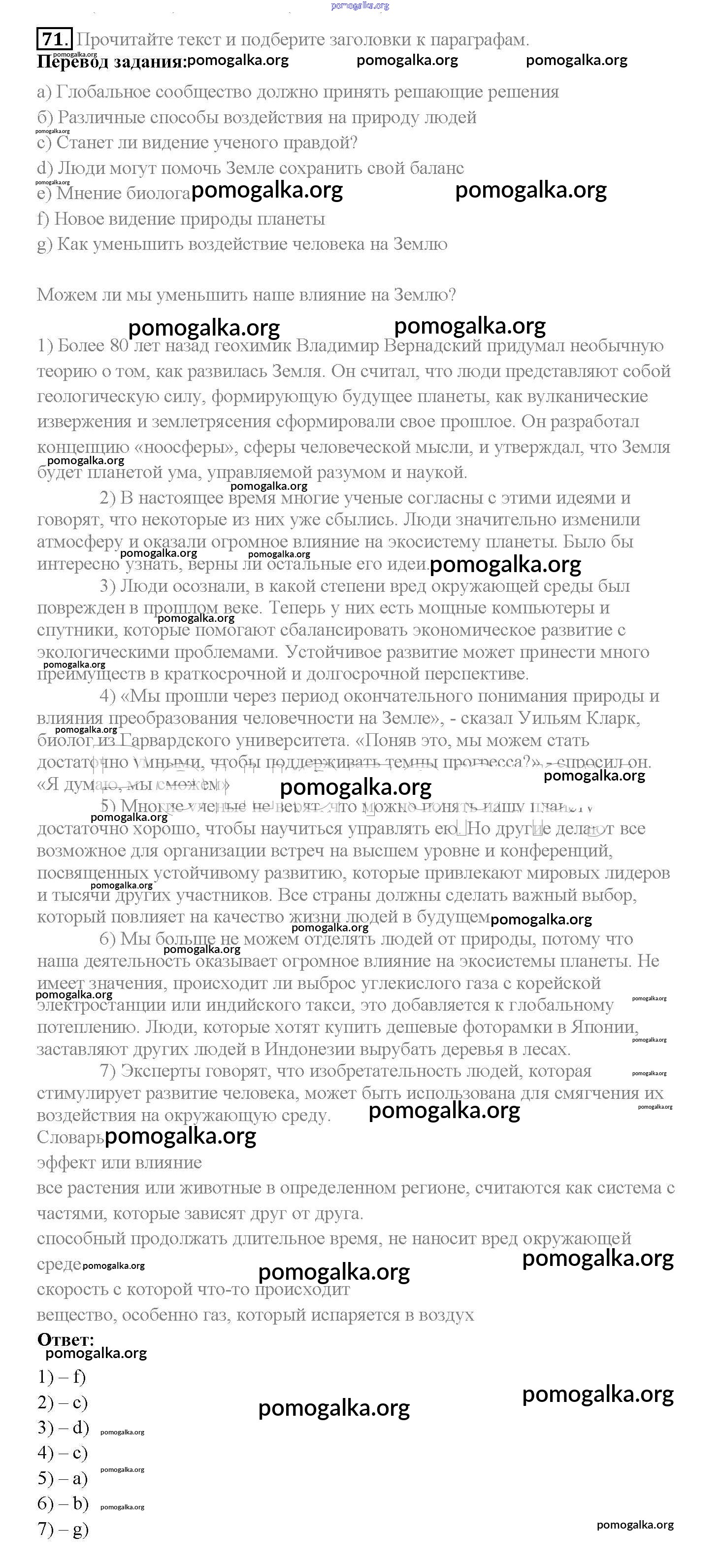 Готовые ответы - Английский язык 10 класс Enjoy English Биболетова М.З. - unit 3 71
