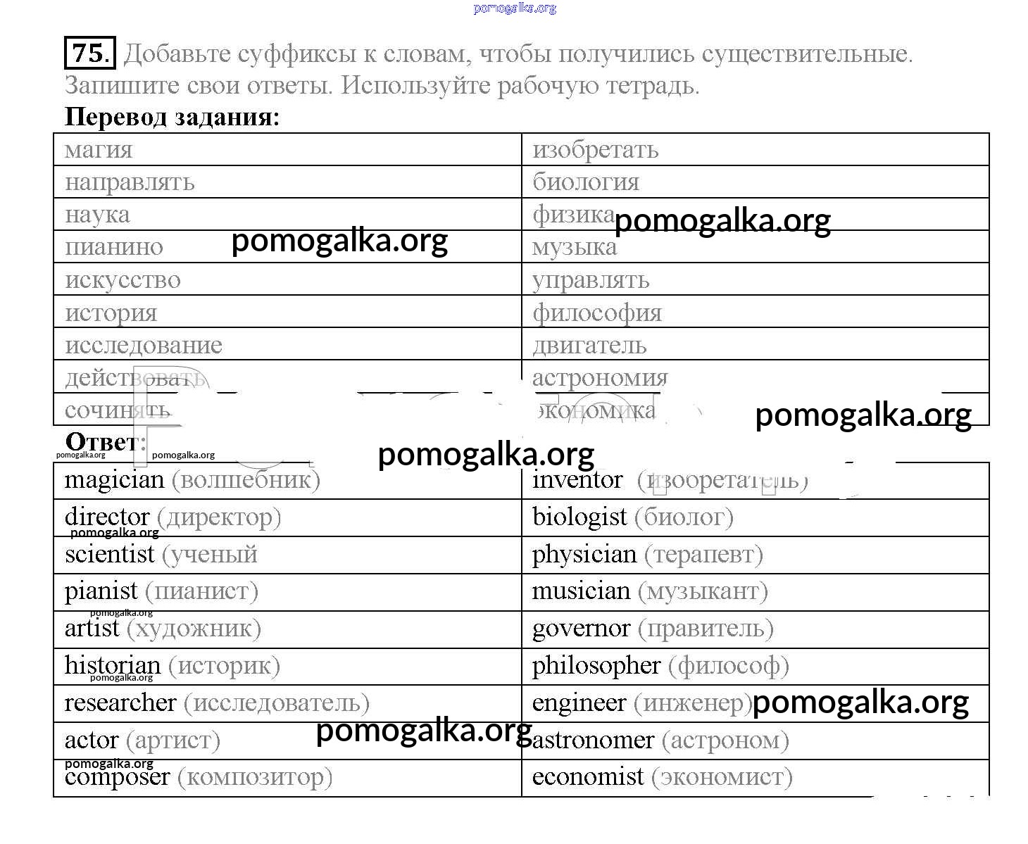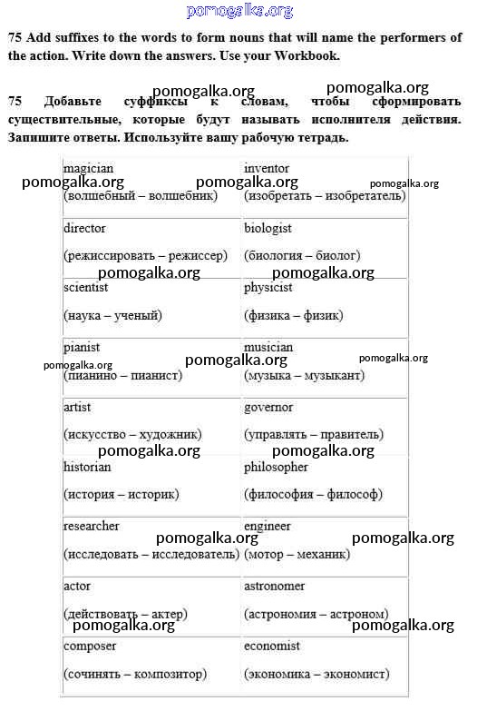Готовые ответы - Английский язык 10 класс Enjoy English Биболетова М.З. - unit 3 75
