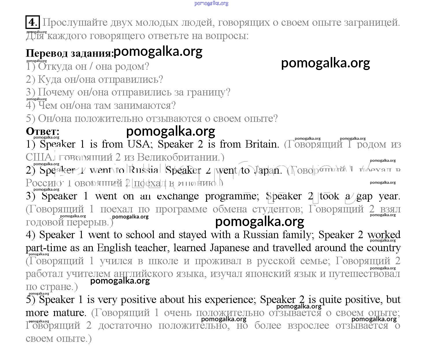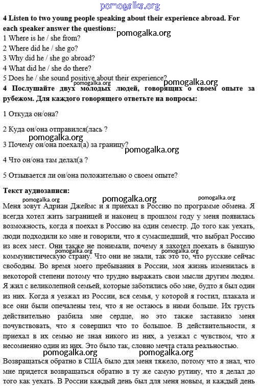 Готовые ответы - Английский язык 10 класс Enjoy English Биболетова М.З. - unit 4 4