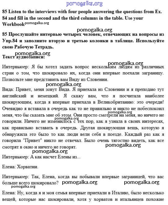 Готовые ответы - Английский язык 10 класс Enjoy English Биболетова М.З. - unit 4 85