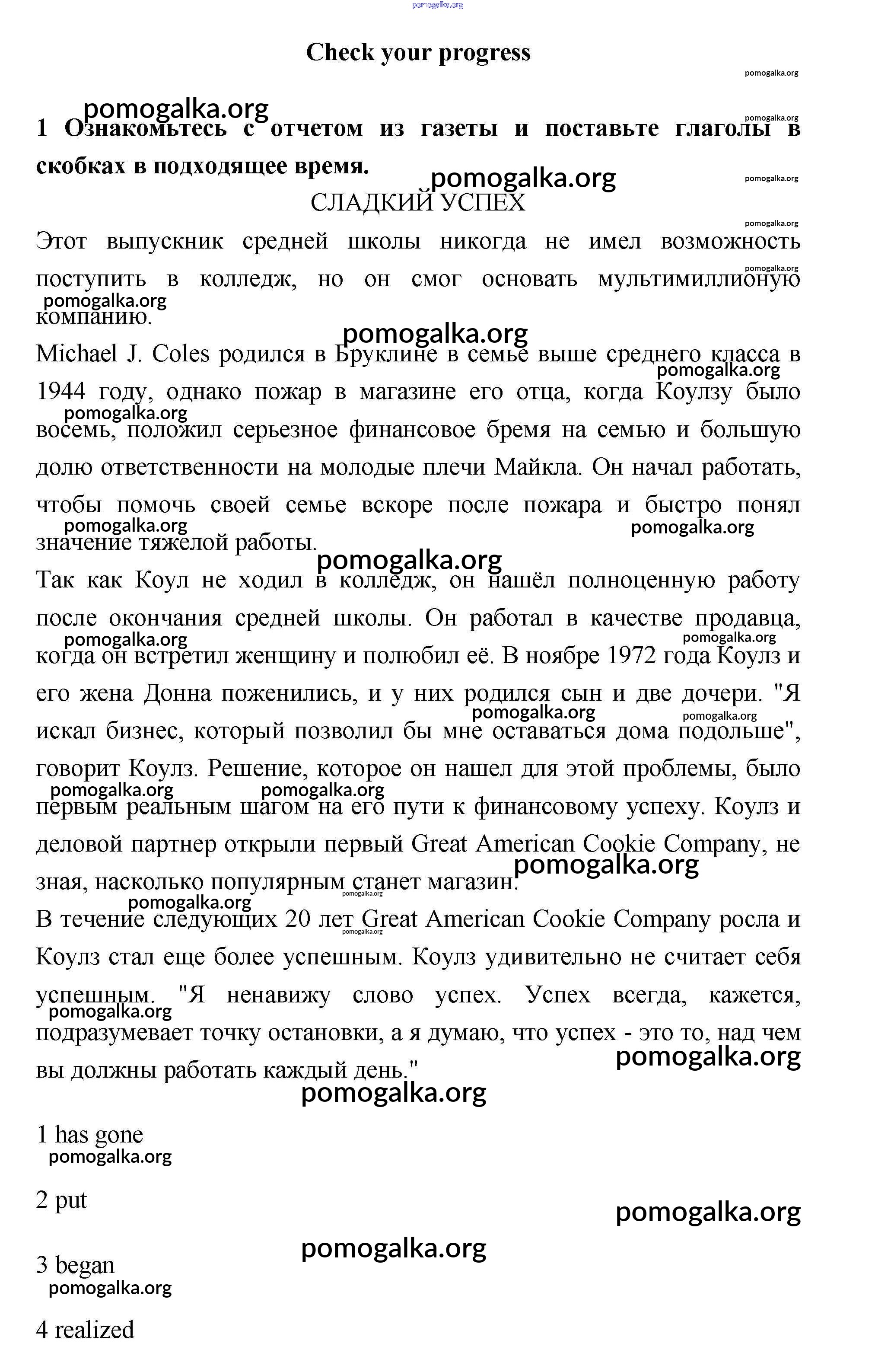 Готовые ответы - Английский язык 10 класс New Millennium Гроза О.Л. - сheck your progress unit 2 1