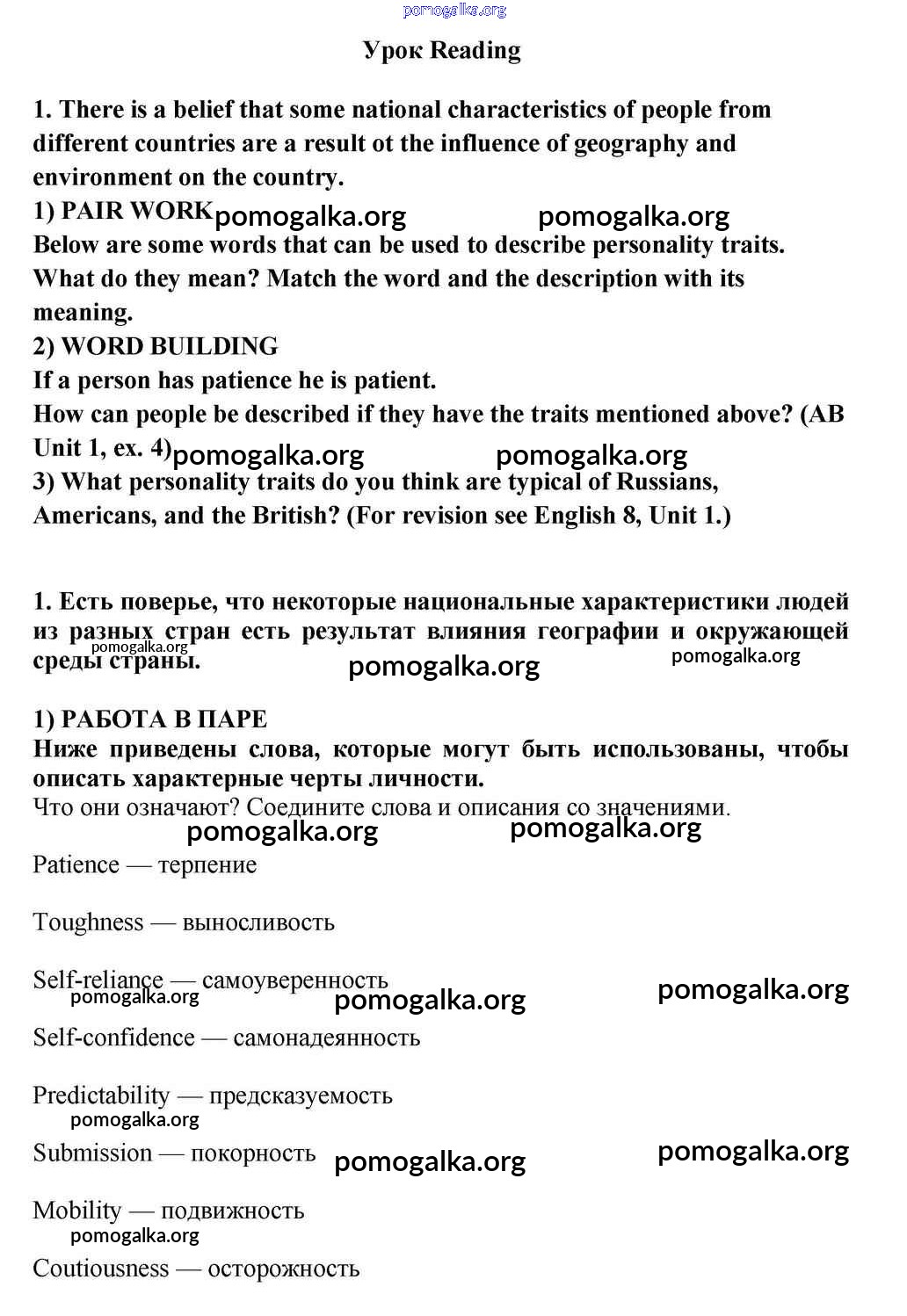 Готовые ответы - Английский язык 10-11 класс Кузовлёв В.П. - reading unit 1 1