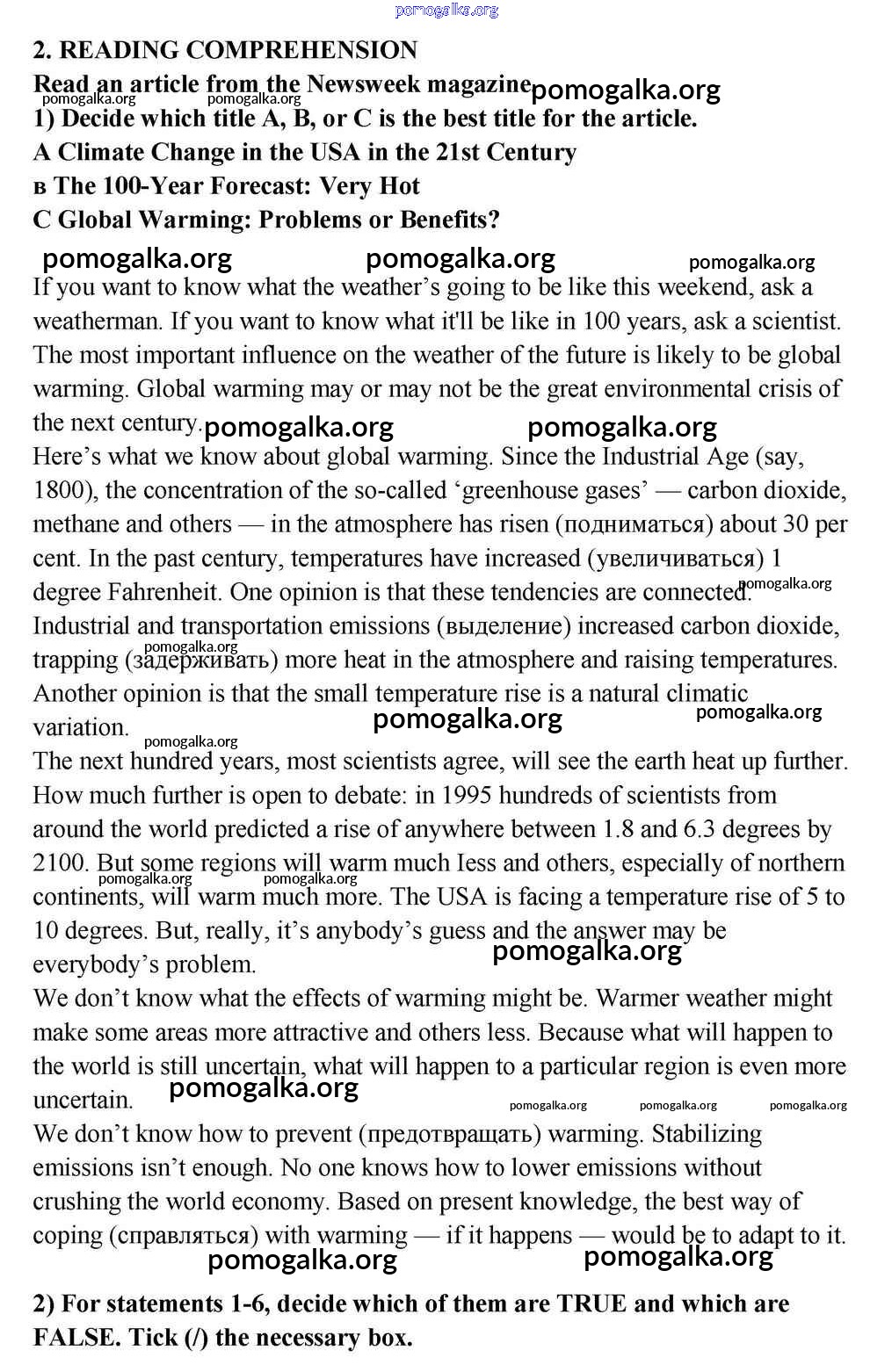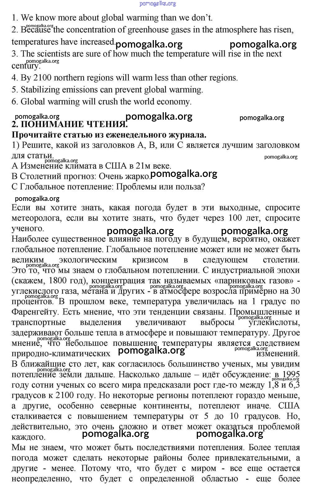 Готовые ответы - Английский язык 10-11 класс Кузовлёв В.П. - lesson 7 unit 1 2